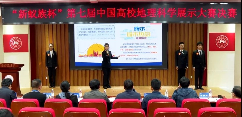 为促进全国高校地理学科建设和育人成果的交流学习,提高地理专业大学生的学习创新能力、团队协作能力、逻辑表达能力等综合素质,激发学生对地理学的学习热情,2006年我院创办“华南高校地理科学展示大赛”,并成功举办七届赛事活动,取得了良好的学术影响和示范效应,吸引了全国各地(含港澳台地区)高校的积极响应和参与。2015年,大赛升级为“中国高校地理科学展示大赛”,由中国地理学会和我院联合主办,面向全国高校的地理学及相关专业本科生开放,先后在多所大学成功举办。2018年第四届大赛起由广东新蚁族文化发展有限公司协办,并冠名“新蚁族杯”。