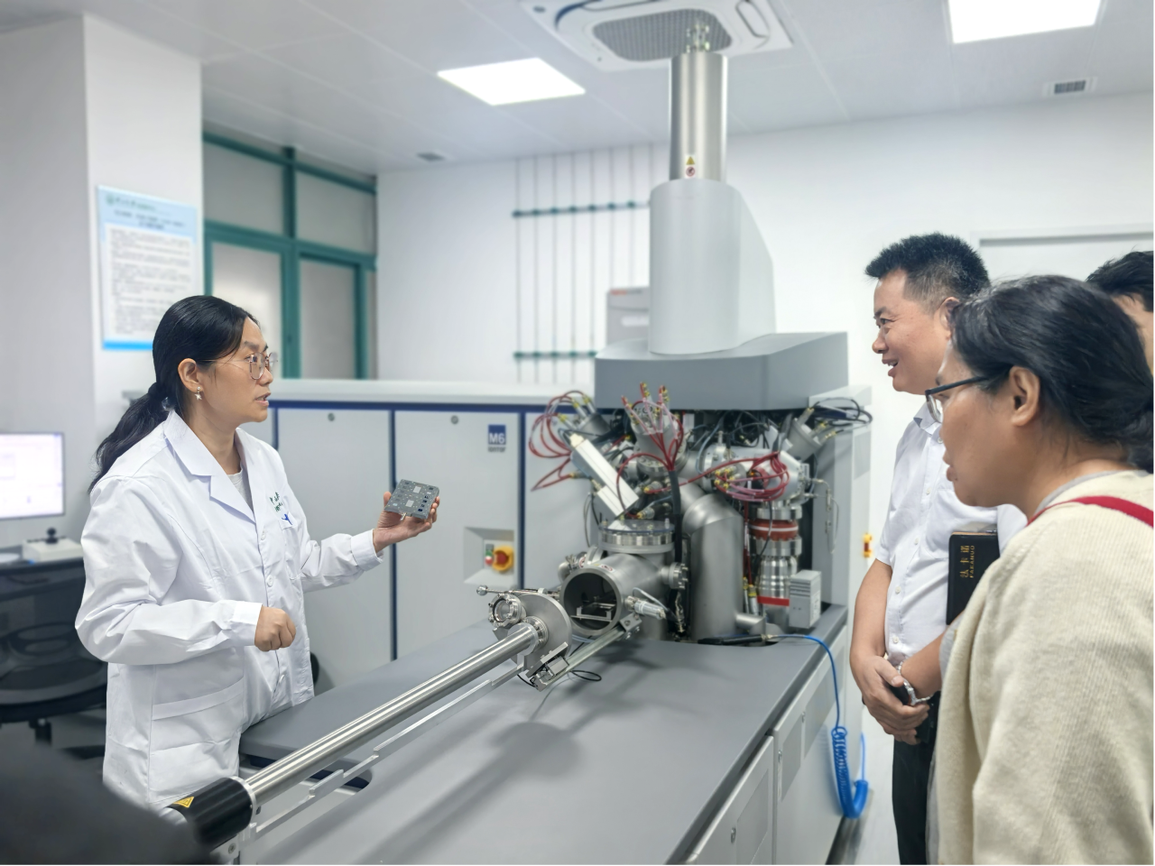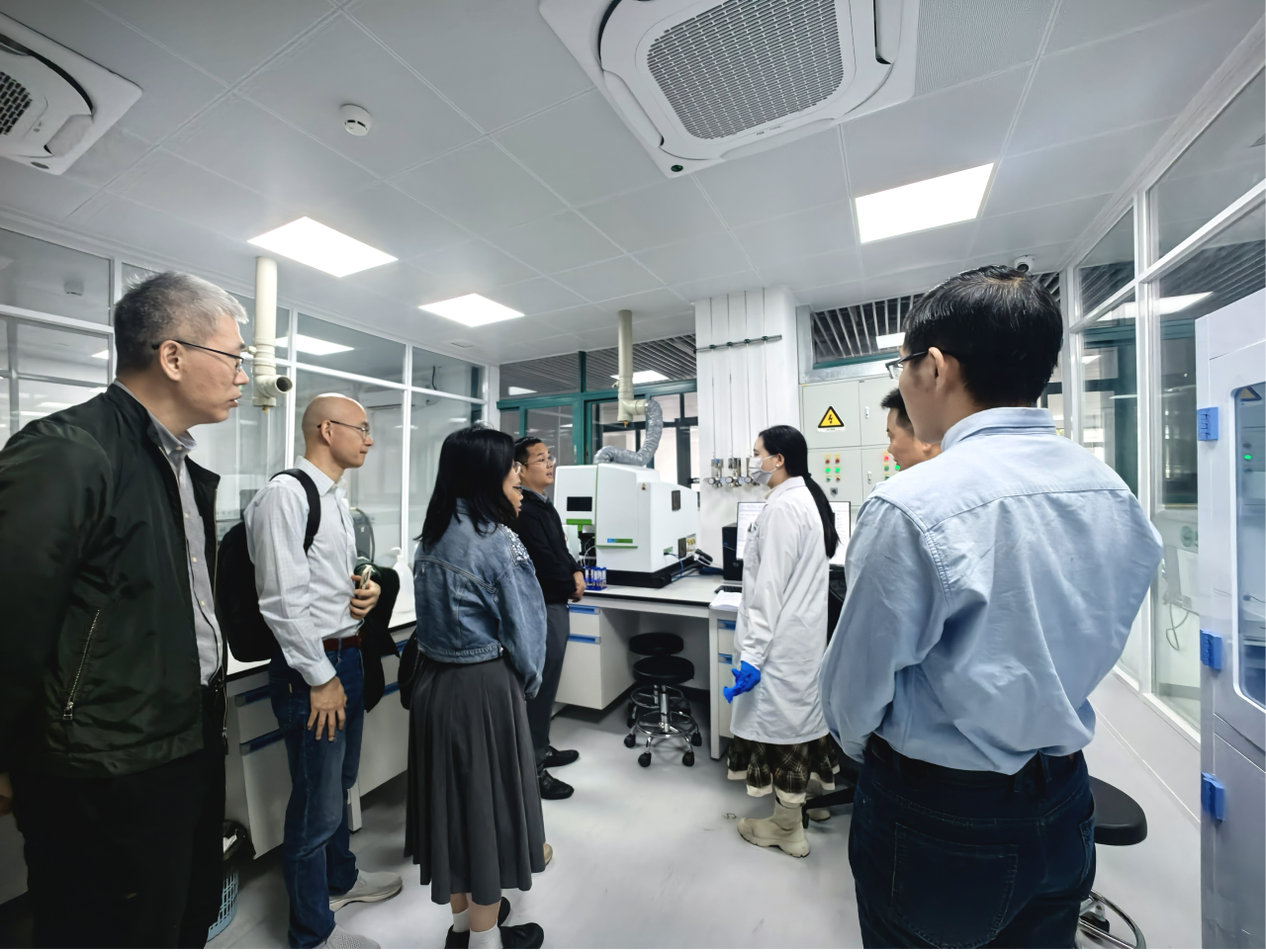 活动伊始,与会全体党员同志在威廉williamhill分析测试中心实验室(樱园4号C座)集中参观。作为学校理、工、医科重要的校级大型仪器公共服务平台,该中心自1983年创建以来,已发展成为华南地区规模最大、仪器设备先进、综合分析测试能力雄厚的大型理化分析中心之一。在技术人员的专业讲解下,党员同志们近距离参观了包括冷冻电镜系统、高分辨质谱仪等在内的先进仪器设备,深入了解各类精密仪器的功能与应用场景,充分感受到科技支撑在教学科研中的重要推动作用。