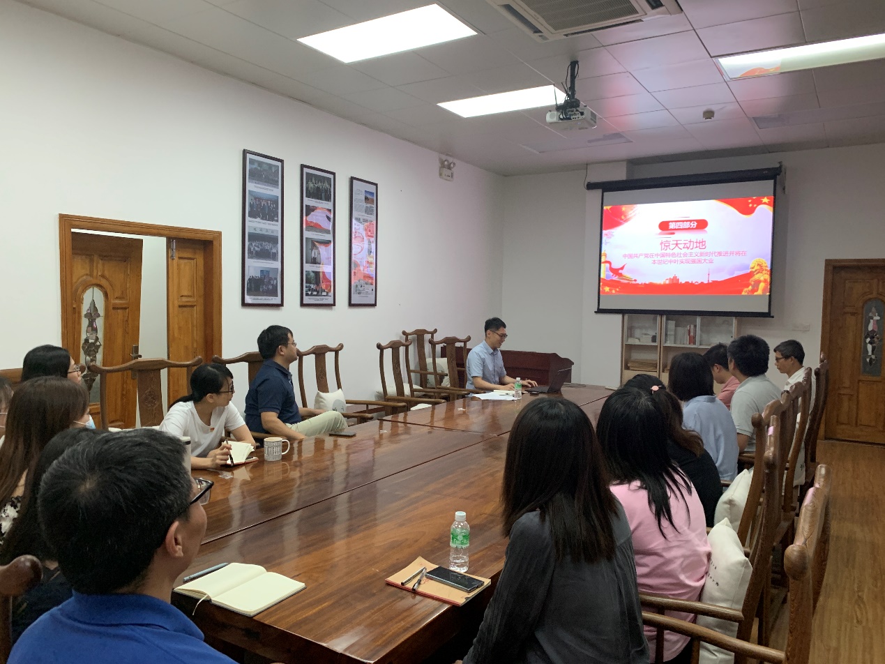 此外,刘晔书记还传达了习近平总书记在两院院士大会、中国科协第十次全国代表大会上的重要讲话精神,并带领支部成员学习了习近平总书记在《求是》杂志上的重要文章《用好红色资源,传承好红色基因,把红色江山世世代代传下去》和《学好“四史”永葆初心、永担使命》。