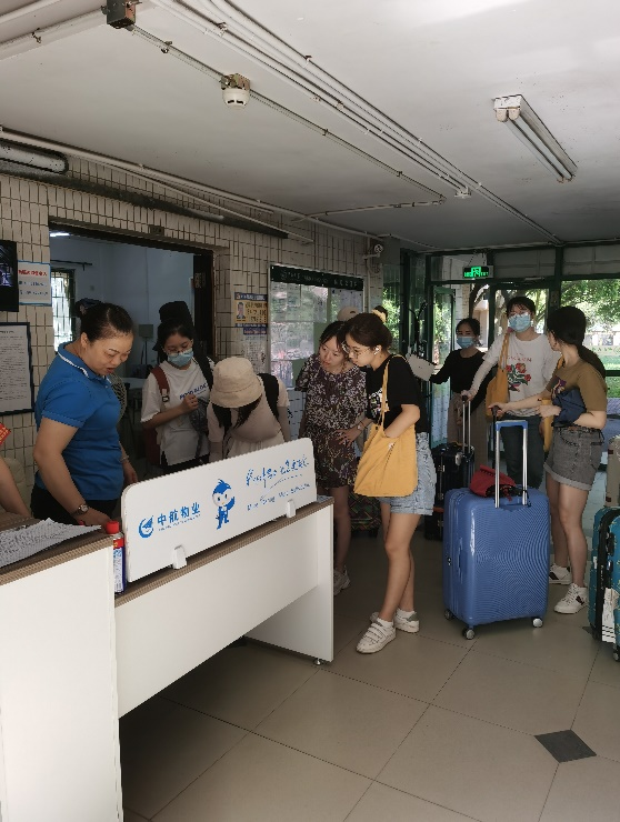 7月21日、22日上午7点在东校园,学院老师和志愿者们就已经在各调度点就位。当同学们和他们行李达到后,老师们马上带领志愿者投入紧张的工作中,他们在宿舍楼下维持秩序,组织同学们有序卸载行李物品,并及时协调解决临时出现的各种状况和问题。从办理入住,搬运行李,打扫卫生,整理行李……同学们在收拾东西的同时也趁着阳光晒晒被子,也感受着东校园的亲切和温暖,一起愉快地融入新环境。