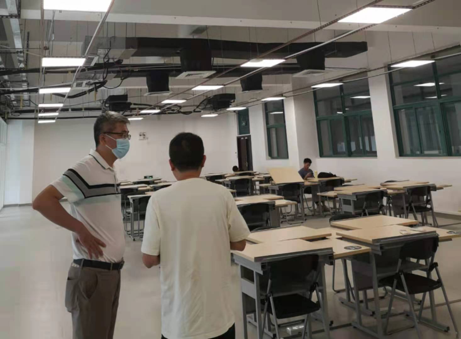按学校总体安排,我院全体学生于7月21-22日搬迁至东校园,而根据新学院楼施工进度,学院整体搬迁将于8月底进行。为保证学生暑期良好的学习环境和设施,学院在搬迁工作筹划中将暑期学生工作室建设列为专项,重点推进,安排专人跟进。研究生暑期工作室需求调研、房间规划、施工进度安排,电路铺设,卡座安装,空调、电灯、插座、门禁安装,网络设置,房间保洁等等,各项工作紧张有序,安排周全。在搬迁动员会上,学院领导和老师还还不断询问学生的实际需求,并随时做出调整,以保证暑期研究生能够拥有自己的工作卡位。在学院的安排和统筹下,敞亮整洁、设施完备的工作室终于按期准备就绪。