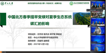 我院代表队由2018级自然地理与资源环境专业的任艺佳、杨天垚、谭子敏、黄砺成四位同学组成,指导老师为邱建秀副教授,其作品题目为《中国北方春季提早变绿对夏季生态系统碳汇的影响分析》,在本届比赛中获一等奖。