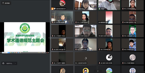 讲座采用线上线下相结合的形式,由副院长辛秦川教授主讲,地图学与地理信息系统硕士班班主任刘小平教授以及研究生辅导员孟祥韵老师一同与会,全体2021级硕、博士研究生新生参加会议。