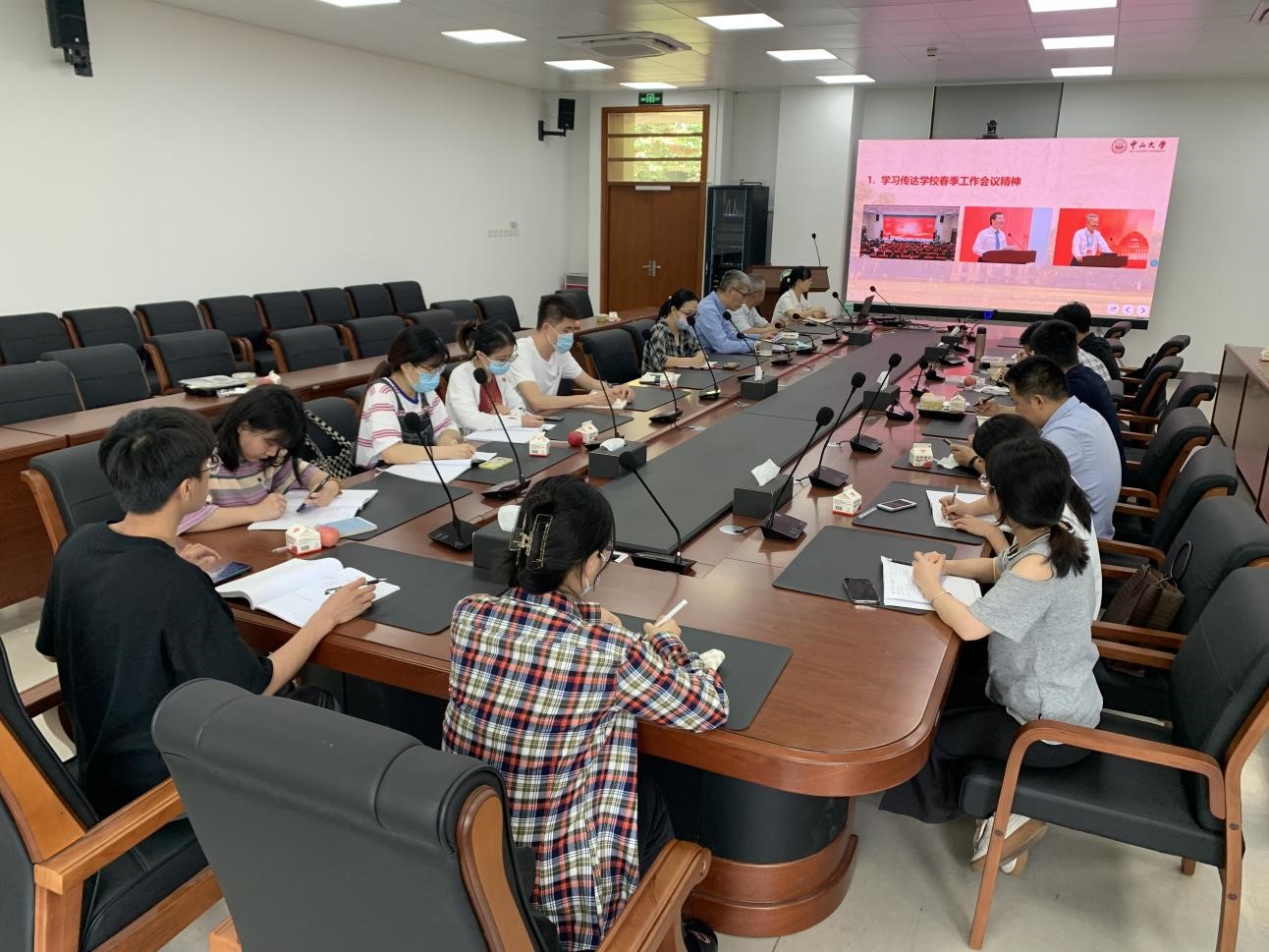 第一部分由岳辉书记带领与会人员学习学校春季工作会议精神、五月组织生活要点,对学院党员大会筹备工作进行部署。他重点传达了高松校长作的“以高水平人才培养和高素质教师队伍建设为抓手,扎实推进学校高质量内涵式发展“的大会报告,和陈春声书记做的大会总结报告,要求党员同志要提高站位,迎接挑战,贯彻党的教育方针,加强基层党建工作,随后带领大家梳理五月党支部组织生活要点,最后对学院党员大会的筹备工作进行部署,要求各支部书记高度重视,落实责任,明确要求,确保会议顺利召开。