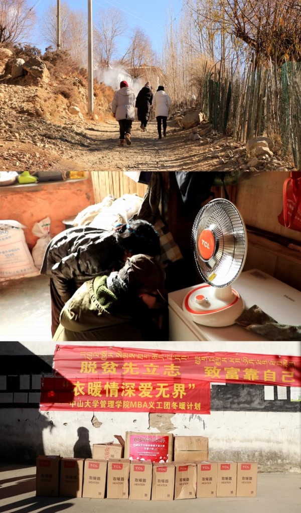 2019年,我国的脱贫攻坚工作取得了阶段性成功,但在西藏,还有不少学生因家境贫寒而被迫辍学务工务农。为此,林芝分队制定并推动了“高原梦想计划”项目,队员们精诚合作,整合资源,为西藏林芝一中争取了逾60万元的奖助学金,资助学生人数达578人次,其中“一对一”助学占122人。在节假日之时,何嘉锐与队员们走遍了林芝的六县一区,力所能及行公益之事。他负责并策划了“暖冬行动”,来到刚刚“摘帽”的朗县托麦村,走访村内七户贫困户,为其手把手演示爱心物资的使用方法,希望让他们感受到“这个冬天不再寒冷”。