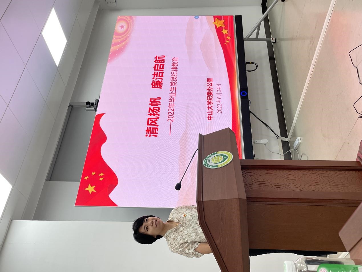 全场奏唱国歌后,毕业生党员纪律教育大会拉开帷幕。芦帅老师、郑佳老师首先给毕业生党员进行题为“清风扬帆,廉洁启航”的纪律教育。两位老师以视频、漫画等形式剖析了年轻干部几种典型的违纪违规行为,芦帅老师指出,青年是国家的希望、民族的未来,青年干部是党和国家事业的接班人。忠诚、干净、担当是习近平总书记对新时代党员干部的要求,也是时代的底色。她寄语毕业生要树正世界观、培正价值观,筑牢理想信念的压舱石;要把正事业观、端正权力观,保持高尚品格和廉洁操守;要校正纪法观、严把自律关,守住做人做事的底线。郑佳老师带领大家学习了广西乐业县白坭村第一书记黄文秀、扫雷排爆大队杜富国的优秀事迹,鼓励毕业生党员不断锤炼意志力,坚韧力,涵养廉洁自律的道德修为,做到心有所畏,言有所戒,行有所止,做到五个带头,争做五个模范。芦帅老师代表学校纪委宣读了《致威廉williamhill2022届毕业生廉洁倡议书》,所有的毕业生党员在“致威廉williamhill2022届毕业生廉洁倡议书”写下自己的承诺。