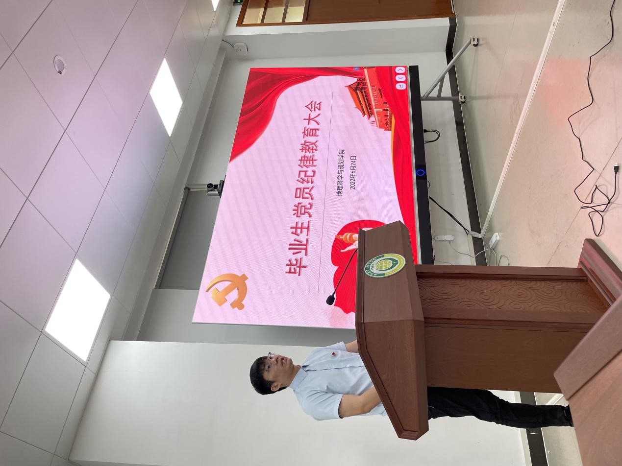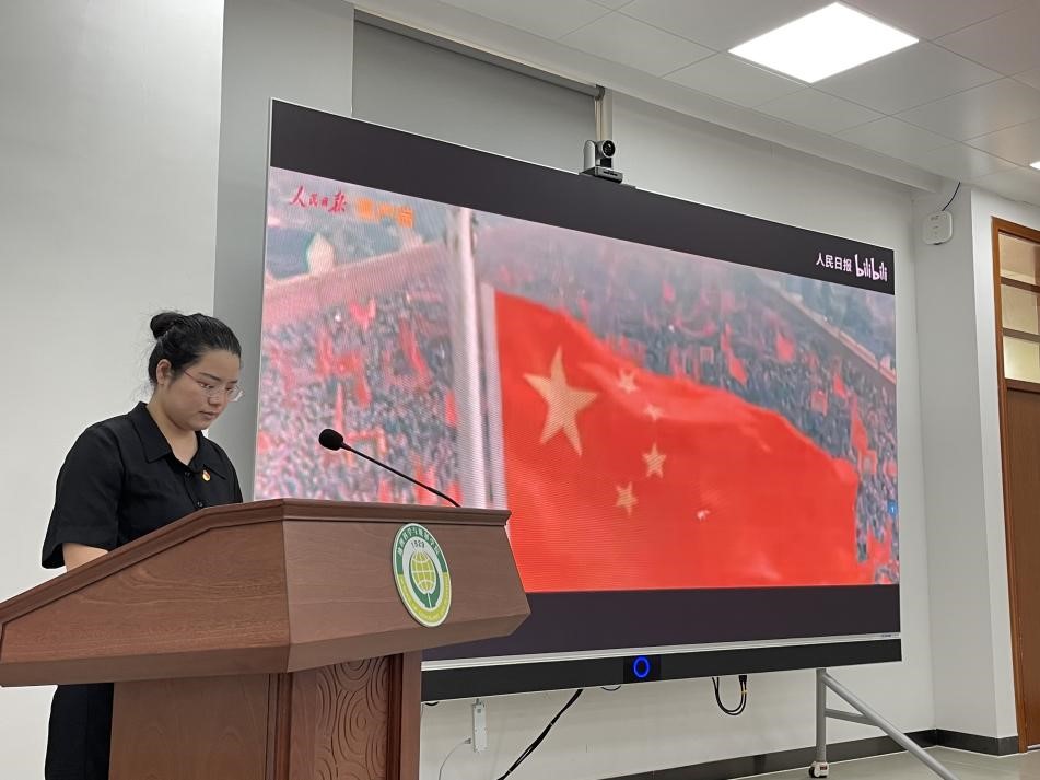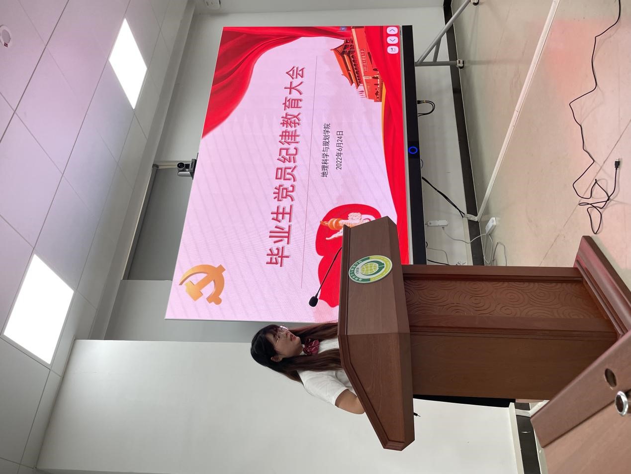 毕业生党员代表李佳豪进行发言,表达了将会敬业奉献回馈学院的培养,不负初心使命的决心,同时表示作为即将进入工作岗位的毕业生党员,代表全体毕业生承诺,坚守根和魂,坚守清正廉洁的道德底线。2018级人文地理与城乡规划本科生武旋作为毕业生本科生党员分享作为新党员的感受与体会,分享对信仰的思考,表达了对学院培养的感谢,并承诺未来将会发挥自己党员先锋模范的作用。