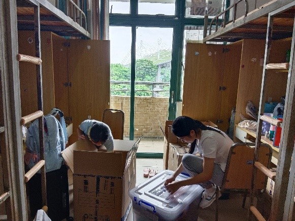 7月16日上午,学院在南校园召开搬迁动员大会,廖威林老师对搬迁工作进行了详细的介绍,包括搬迁当天货运、客运时间点安排,货运行李存放处、客运上车地点,东校园的宿舍安排情况、行李打包指引、应急预案等,并组建搬迁志愿者团队,对于因疫情未能参与搬迁同学的行李搬运也做了细致的安排。谢静老师根据前期统计的行李件数和搬迁人数统一租赁货车、客车,并在动员大会结束后完成行李标签、马克笔等搬迁物资的发放工作。动员大会后,按学校搬迁工作部署,辅导员和志愿者前往东校园对学生宿舍的卫生、设施运行等情况进行全面检查,并在宿舍门上张贴欢迎门贴,为每个宿舍细心配置了清洁用具。
