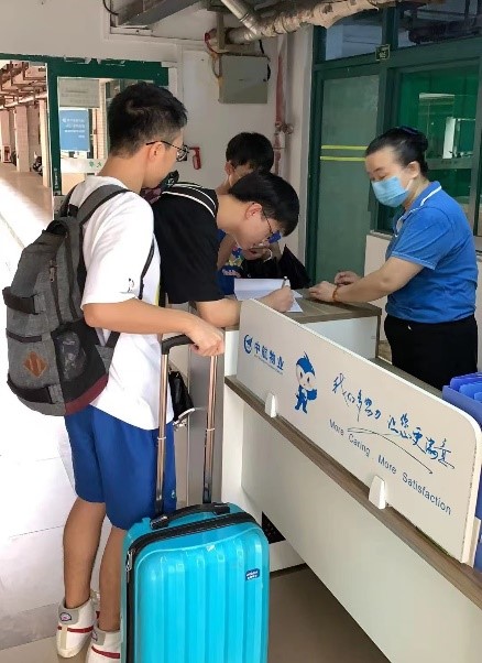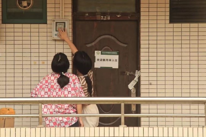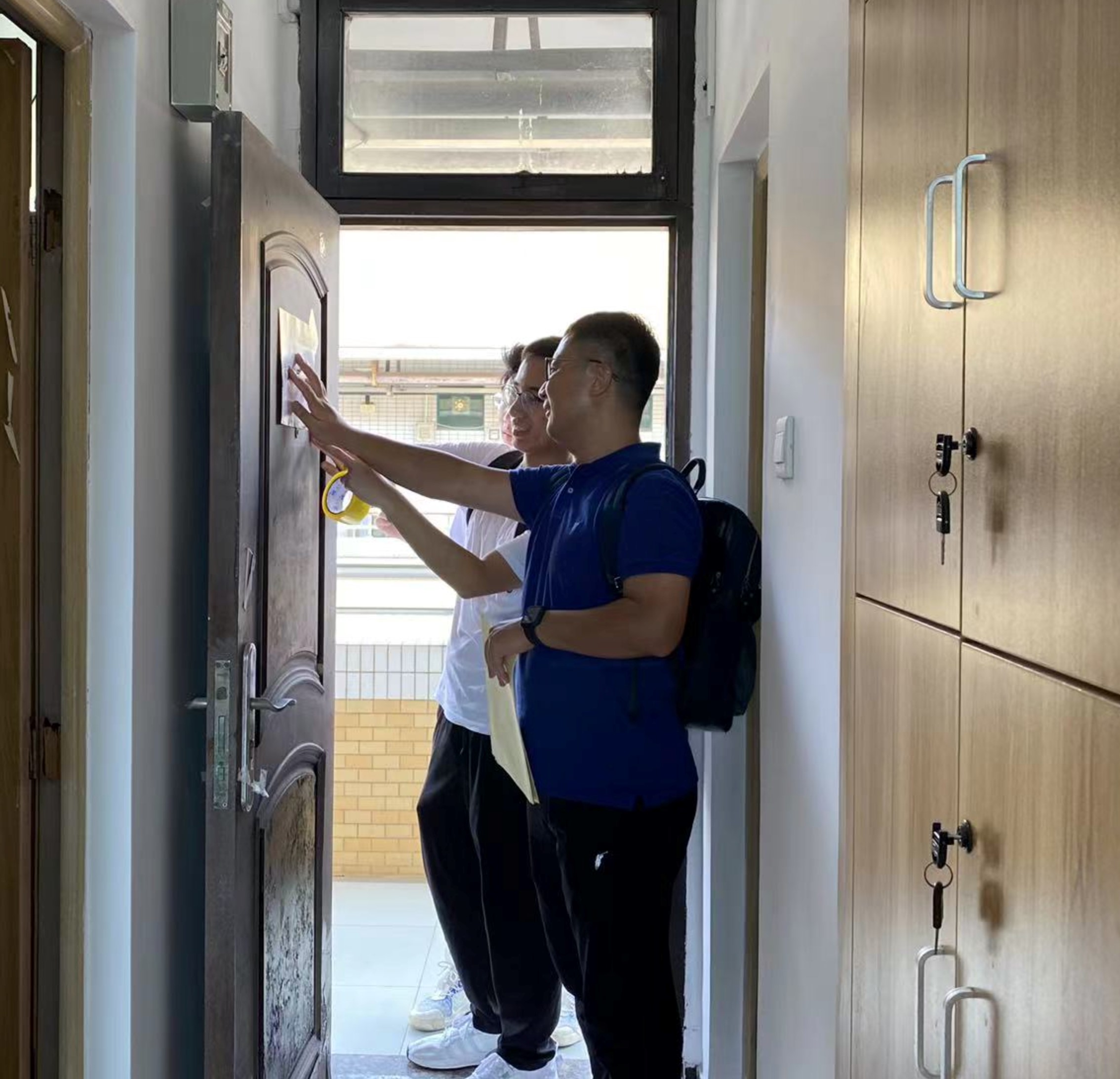 同学们抵达宿舍楼后,排队登记入住,领取钥匙和空调遥控器,领取行李,打扫宿舍,收拾行李,一切事宜按照步骤进行,井然有序,有条不紊。