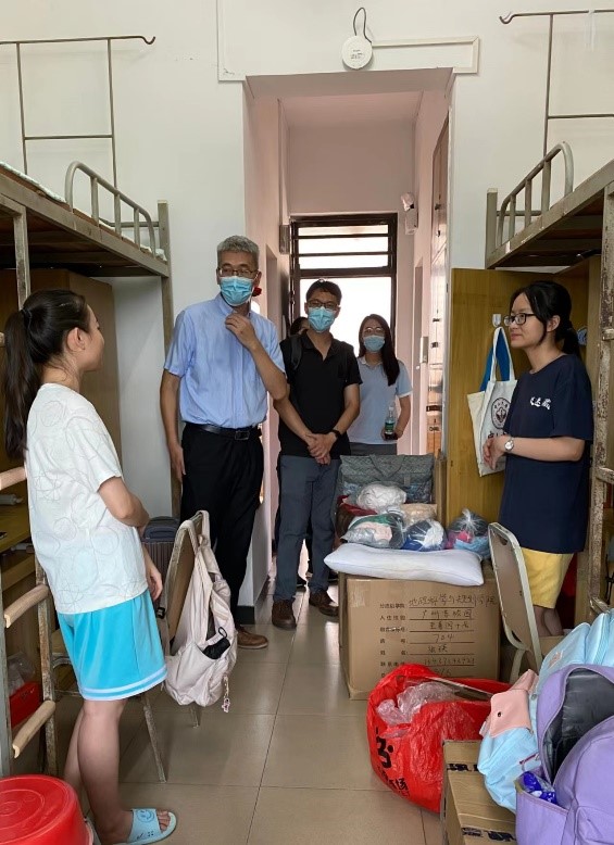7月18日下午16:00左右,学院薛德升院长、党委岳辉书记、马育军副院长、张春华副书记、刘晔院长助理及辅导员、班主任分组逐一走访宿舍,了解同学们住宿情况,并热心询问同学们的暑期安排,还回答了同学们提出的专业和生活方面的问题。学院领导和各位老师的暖心问候和耐心回答,让初到东校园的2021级本科生们感受到了家一般的温暖。