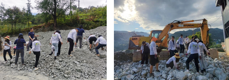 师生挑选搬运石头