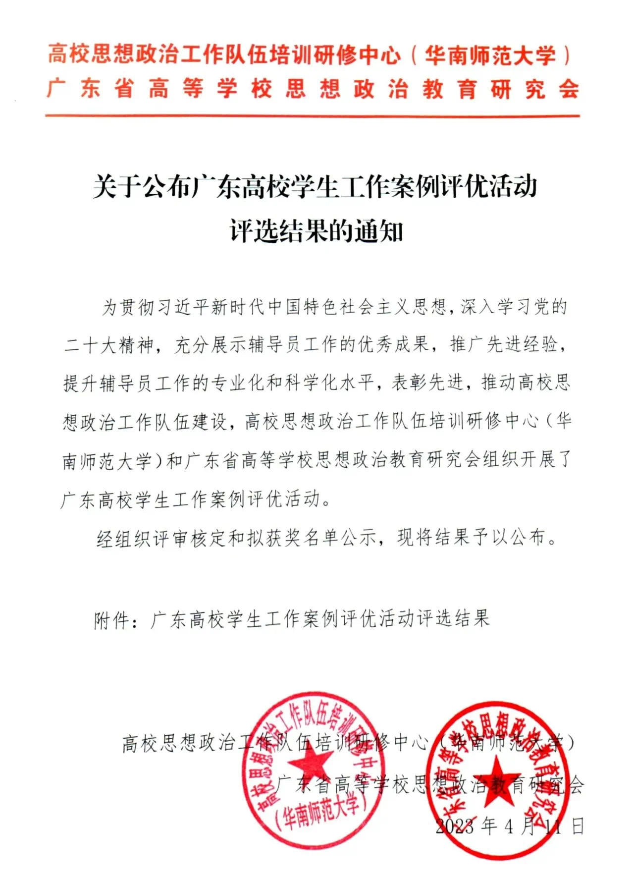 近日,由广东省高校思想政治工作队伍培训研修中心(华南师范大学)、广东省高等学校思想政治教育研究会组织开展的2022年度广东高校学生工作案例评优结果公布,由我院青年教师辅导员黄耿志、陈梓烽提交的“融合学科特色与思政教育的第二课堂建设——《国家战略与地理学》第二课堂脸谱化思政课”案例获得二等奖。