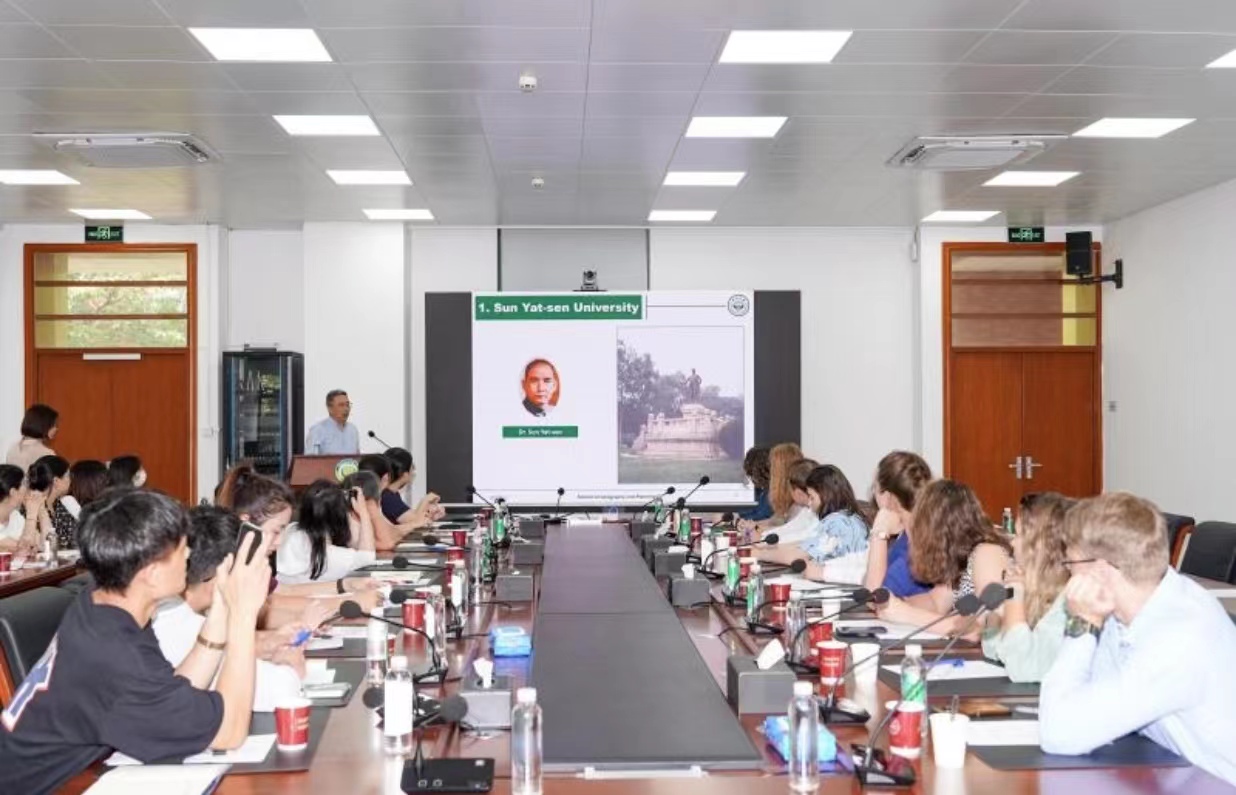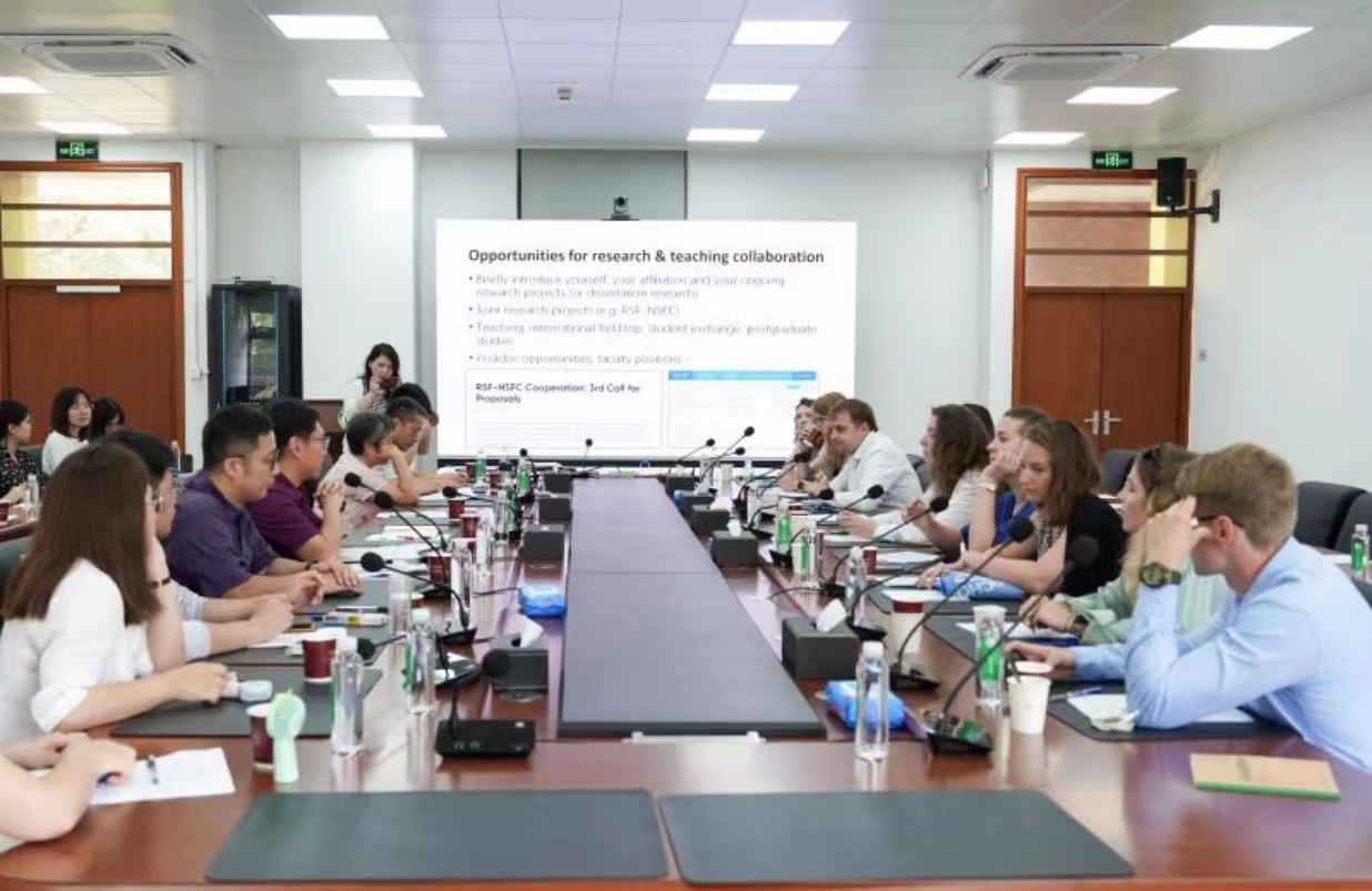 6月2日上午,俄罗斯地理学会代表团Svetlana Vorobieva女士等一行九人前来我院参观交流,中国地理学会外事负责人张萱子女士、中国科学院地理科学与资源研究所李丽娟研究员、西南大学阎罗彬老师陪同访问。俄罗斯地理学会代表团成员包括来自莫斯科大学、秋明国立大学、乌拉尔国立矿业大学、俄罗斯科学院南海生物研究所等多所高校及科研机构的教师及学生代表。本次活动是自2016年以来中国地理学会与俄罗斯地理学会联合组织的师生互访野外实习与学术交流的组成部分,2016年和2018年中国地理学会代表团访问俄罗斯,2017年和2023年俄罗斯地理学会代表团访问中国(2019-2022年因新冠疫情影响而中断)。我院薛德升院长、刘晔院长助理、党政办公室官淑颖副主任、外事秘书姚丹老师等20余位师生参加了本次学术交流活动(图1)。