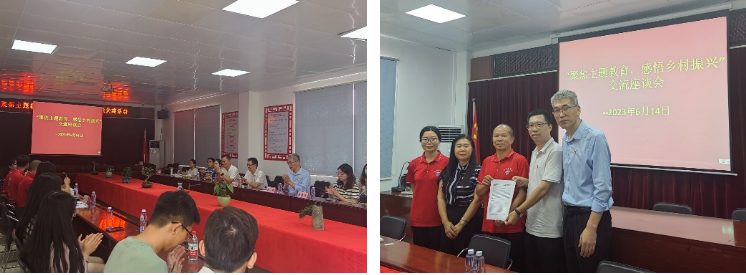 参观结束后,双方党组织开展了以“聚焦主题教育,感悟乡村振兴”为主题的交流座谈会。会上,城市与区域规划系专任教师党支部书记杨忍教授从专业视角解析乡村发展之路,指出乡村产业发展应着力提高其深度、广度和竞争力,并赠送由他撰写的以瑞岭村为研究对象的学术论文《Rural Development Transformation and Social Governance from the Perspective of Specialization: A Case Study of Ruiling village in Guangzhou》。对此,姚标民书记和庄文杰董事长表示高度赞同,并着重强调了党建引领、青年人才、政策和品牌在乡村振兴中的重要作用。