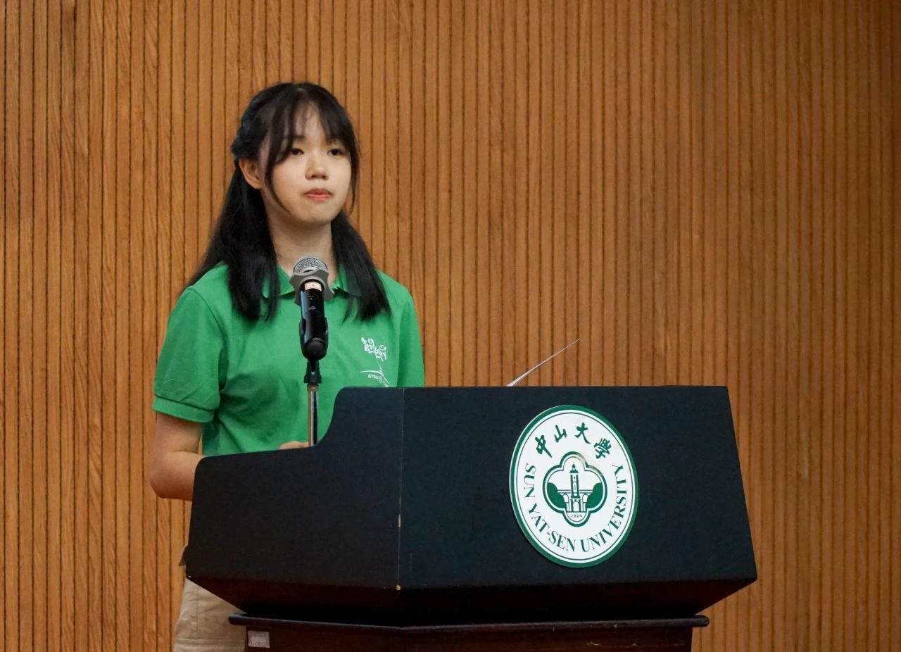 本科新生代表李心茵同学对从中学到大学的转变提出三个方面与同学们共勉。第一要心念家国、志存高远,将个人理想与国家发展需要紧密相连;第二要众木成林、共行前路,在未来的大学生活中与同学们互相帮助、共同进步;第三要奋于笃行、玉汝于成,脚踏实地学习专业知识。
