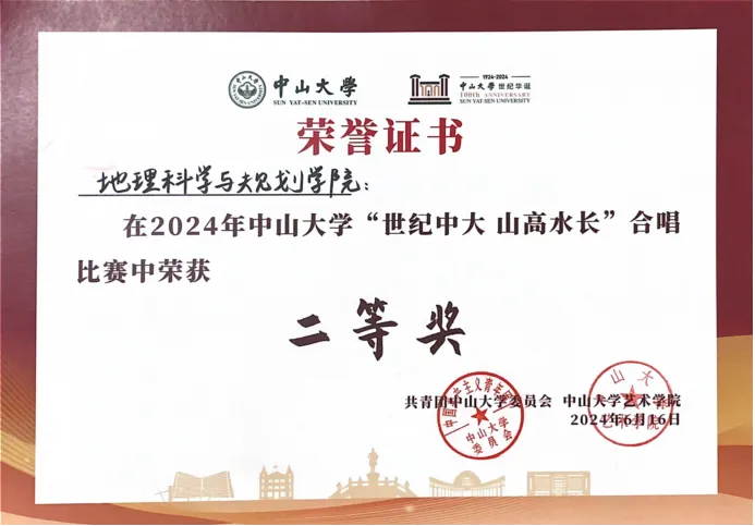 世纪中大,百年华诞。为献礼威廉williamhill百年校庆,williamhill中国师生积极参加2024年“世纪中大 山高水长”合唱比赛,以曲目《彩云追月》表达我院师生对威廉williamhill的深厚情意。经过一个多月的刻苦练习,williamhill中国师生合唱团在三校区五校园的62支合唱队伍中表现出色,荣获二等奖!