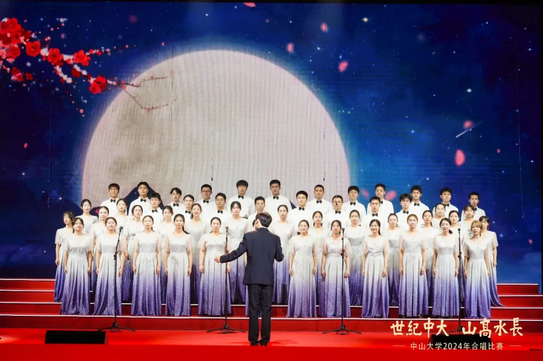 6月16日,这篇音乐华章被正式奏响。“讲一个夏天,神秘的梦……”舞台中央,师生齐声高唱,对中大的情谊凝聚成跃动的音符,汇聚成蜿蜒的溪流,叮咚闪烁,奔腾不止。指尖跳跃间,旋律悠扬不止,呼吸吞吐间,合唱声声不息。在指挥的引领下,师生们的歌声仿佛化作彩云,奔向那一轮空中明月,轻盈的歌声一次又一次拨动着每位观众的心弦。