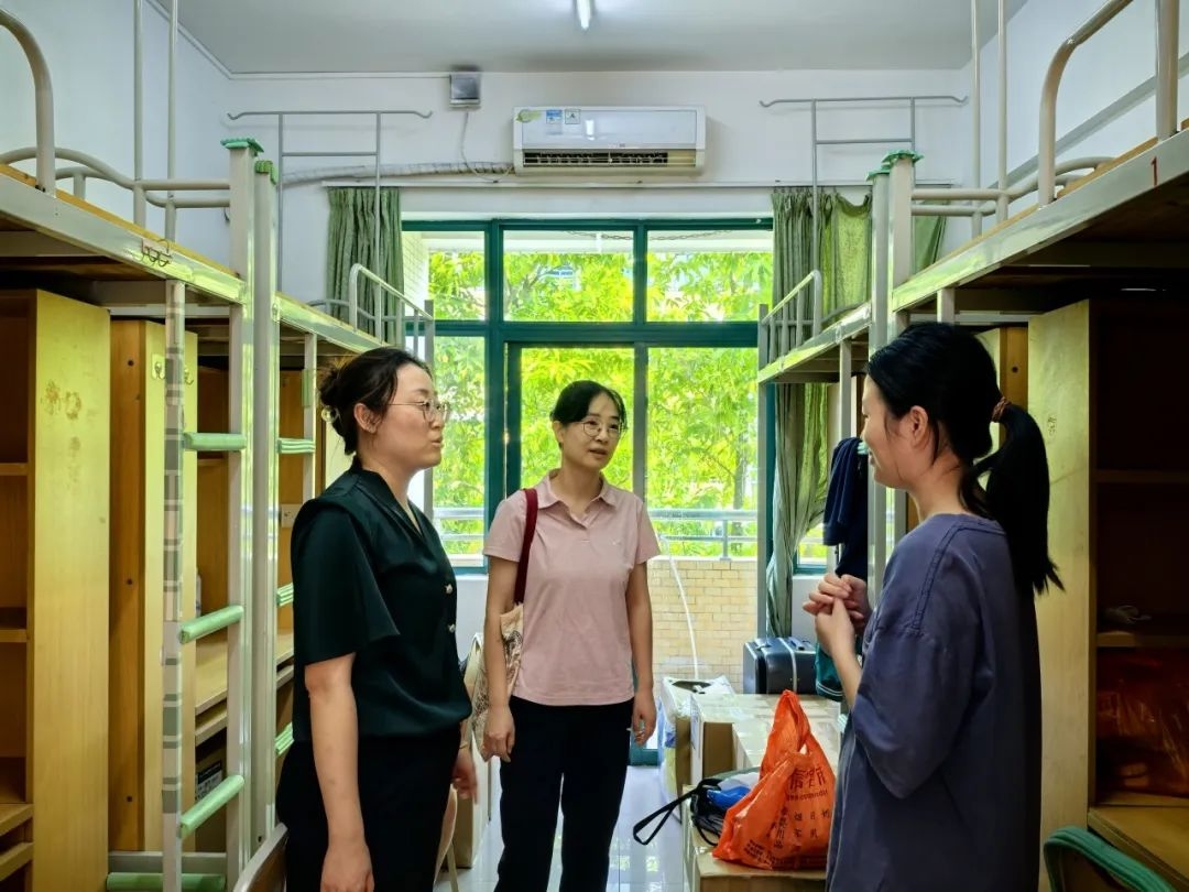 搬迁工作结束后,学院张春华副书记、姜帆老师、崔国韬老师第一时间深入同学新宿舍,与同学们进行了亲切交流,细致了解同学们对新环境的适应情况,并及时询问解决同学们所遇到的问题与困难。走访过程中,老师与同学们热心交流,向同学们介绍东校园学习、饮食、交通等情况,确保每位同学都能尽快融入新的学习和生活环境。