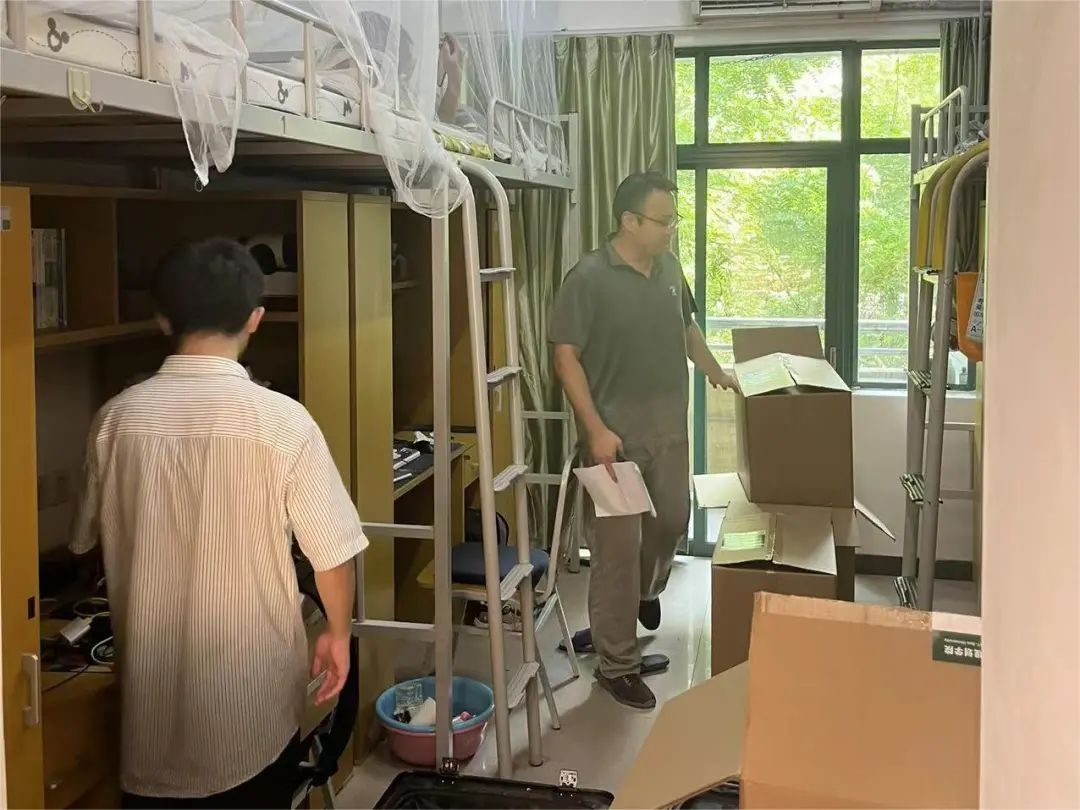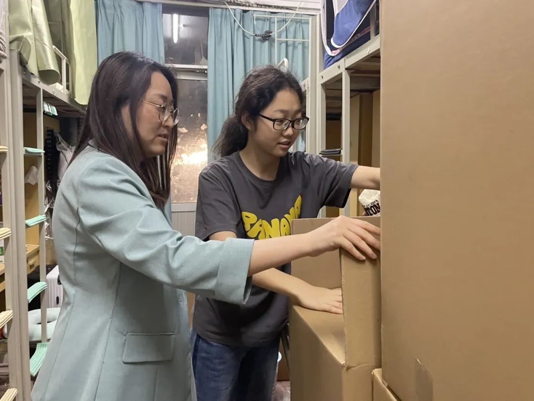 7月9日晚,为了提前解决同学疑问与担忧,确保顺利搬迁,辅导员姜帆、崔国韬老师在搬迁前到学生宿舍逐一走访,深入了解学生们的行李打包进度,叮嘱搬迁细节,对同学提出的疑问进行了现场解答。
