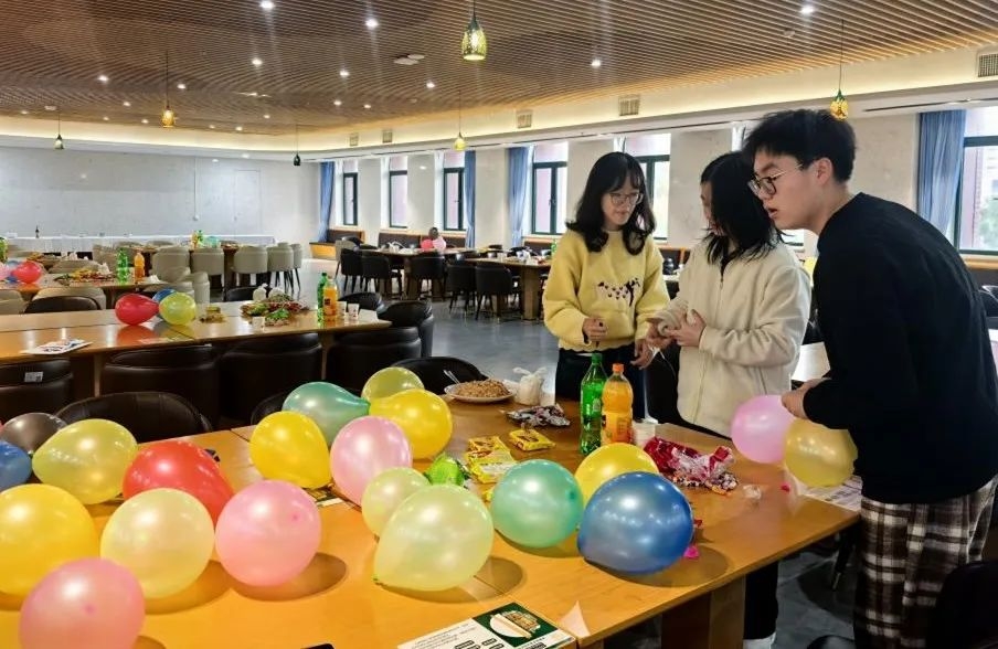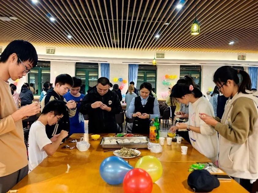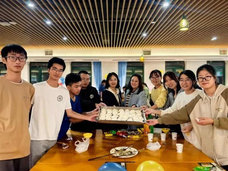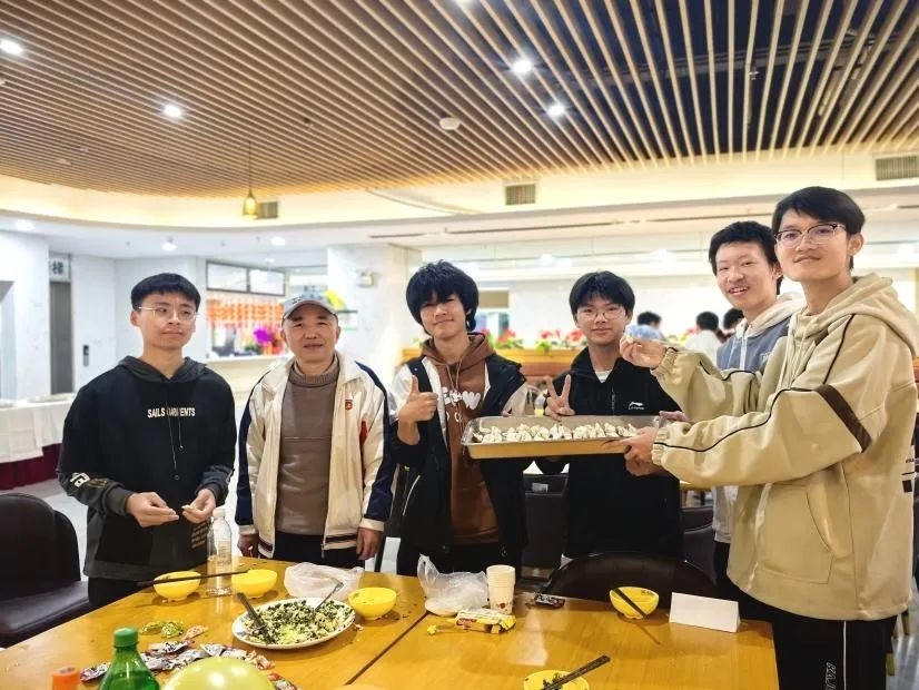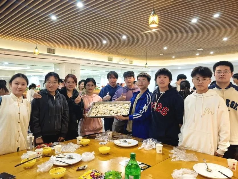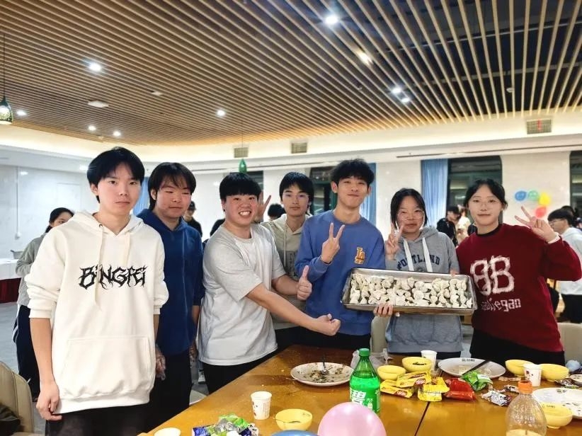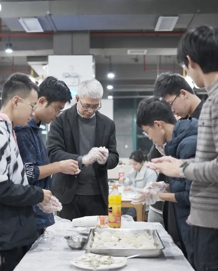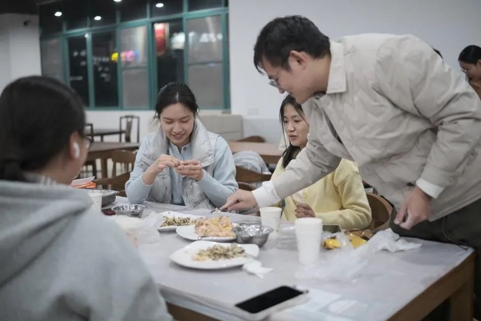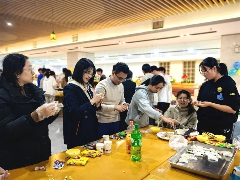 长桌上,各式各样的饺子琳琅满目:玉米鲜肉饺、香菇鲜肉饺,每一种都令人垂涎欲滴。桌上还细心地摆放着各式各样的调料,以及汤圆、点心等美食。师生们围坐一堂,共享着自己亲手制作的饺子,脸上洋溢着节日的喜悦。这顿满载温情的晚餐,不仅驱散了冬夜的寒意,更在学院师生之间搭建了理解与亲近的桥梁。