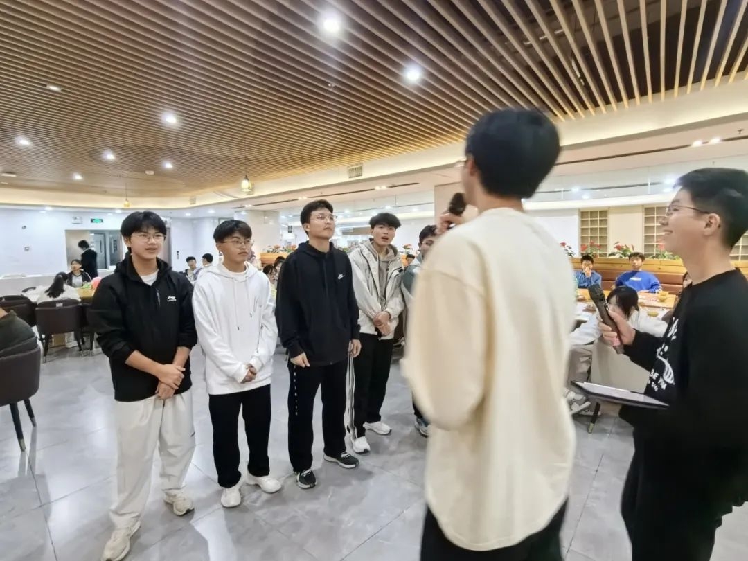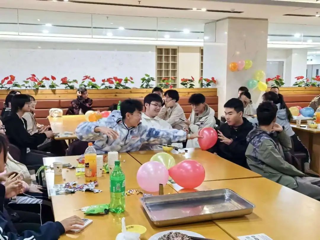 在等待饺子出锅的间隙,主持人引领同学们投入到击鼓传花、听歌识曲等一系列趣味横生的游戏中,现场瞬间被欢声笑语所充盈。随着游戏的推进,气氛愈发活跃,欢声笑语之间,一盘盘热气腾腾、新鲜出炉的饺子也被端上了桌,为这场聚会增添了更多的喜悦与温馨。