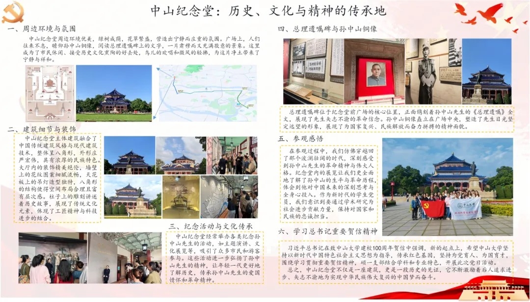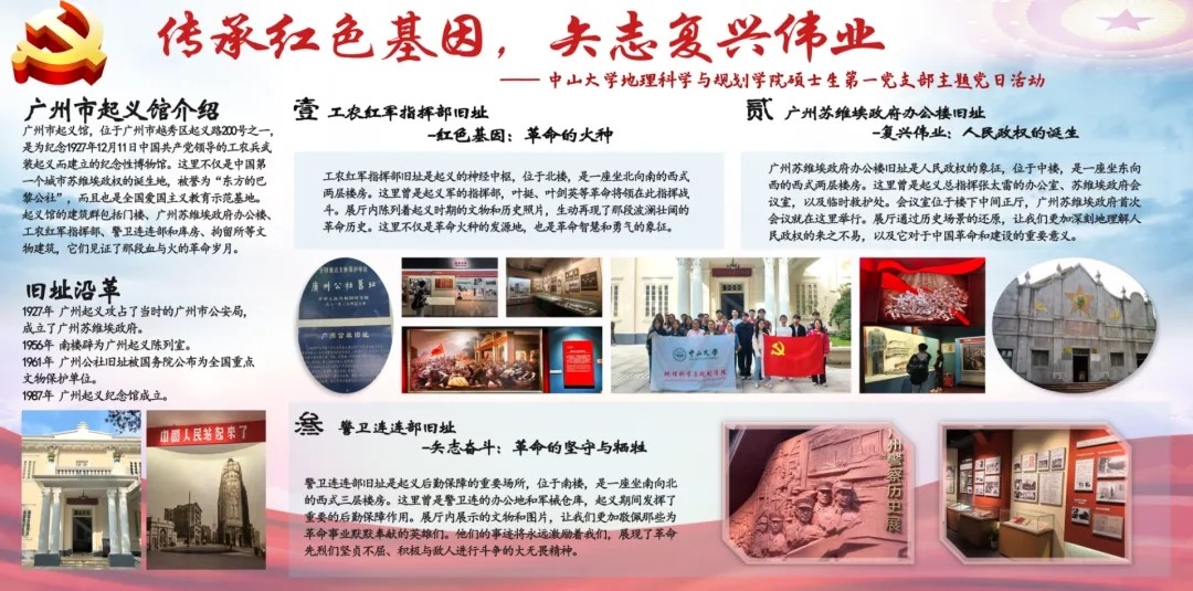 硕士研究生第一党支部首先通过梳理孙中山先生在广东的革命足迹,拟定了“中山纪念堂——广州起义纪念馆”调研路线,由各党小组组长牵头进行实地寻访和后续的制图工作。