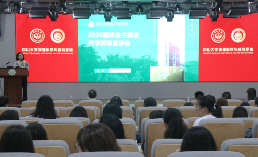 为加强毕业生升学就业指导,提高升学就业质量,我院于4月25日晚在学院A104讲学厅举行2026届毕业生就业升学政策宣讲会。学院党委张春华副书记、院长助理黄耿志教授、2026届毕业班班主任梁育填教授、刘南丰副教授、许晓聪副教授、谭一洺副教授、团委姜帆书记老师以及2026届全体本科毕业生参会,会议由张春华副书记主持。