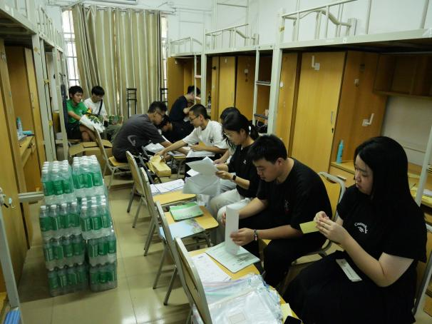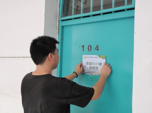 为保障新生顺利入学,学院提前周密部署,召开专项筹备会议,细化迎新流程,筑牢服务保障线。本科生辅导员姜帆和志愿者同学们分别于8月12日、16日两次走访新生宿舍,细致检查卫生与环境,营造整洁舒适的入住氛围。17日至18日,师生志愿者齐聚南校园,投入物资搬运、材料分装、门贴张贴等工作,更亲手书写祝福卡片,将心意融入每一份迎新礼包。