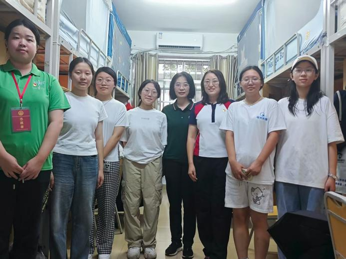 当日下午,学院党委岳辉书记、马育军副院长、张春华副书记、班主任黄华生老师、辅导员姜帆老师等深入新生宿舍,亲切询问住宿适应情况,耐心解答各类问题。“有困难随时找我们”,声声叮嘱消解新生们陌生环境带来的忐忑。老师们特别提醒同学们注意天气变化,预防蚊虫叮咬,并送上诚挚祝福与殷切期望。