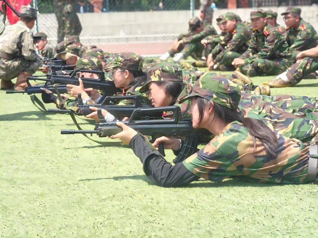 午后的骄阳明晃晃地照着校园,树影乱,人影绰。体育馆外红墙绿荫,体育馆内热火朝天。目光聚焦在那漆黑光亮的枪械上,跟着教官的动作比划,偶尔与同伴交流眼中相同的雀跃。接枪,惊讶于这沉甸甸的份量;趴倒,躯干与枪身紧紧贴合;瞄准,靶心在视野中不断放大——扣动扳机,一瞬却好似永恒。站起身来,拍拍裤子,稚嫩的脸上多了几分气定神闲。当体育馆的灯光照耀迷彩,我们锻炼技能,体悟本领的力量。