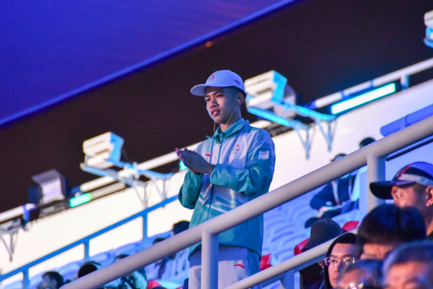 我们小队在本次十五运会开幕式中主要负责西侧楼梯通道的进场引导和离场欢送。我们用一次次热情的指引,一声声温暖的道别见证着嘉宾观众乘兴而来尽兴而归,这条迎来送往的楼梯通道,不再只是冰冷的人流疏散区,而是充满了温度的情感交流站。我们因这场盛会相逢相聚,又在一声声“再见”中友好告别。一张张回应的笑脸,一次次挥手的瞬间,这些简单却动人的情感连接,共同定格成为我在十五运会志愿服务经历中最难忘的画面。
