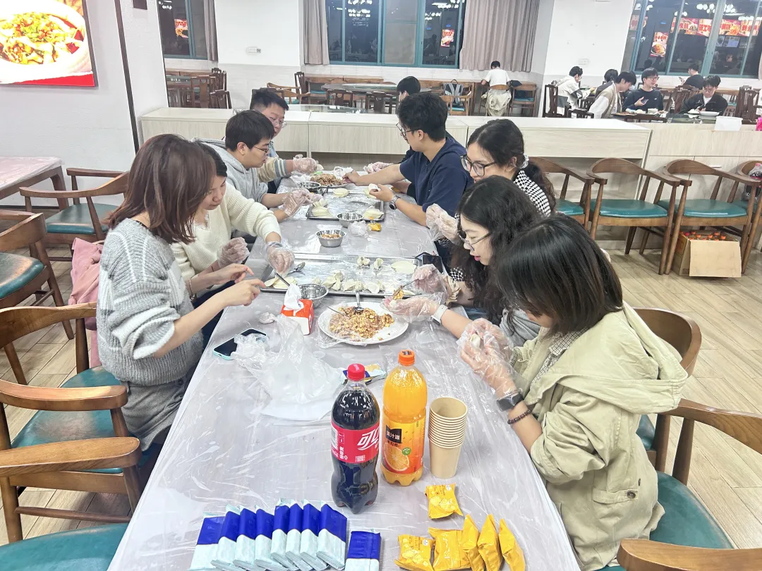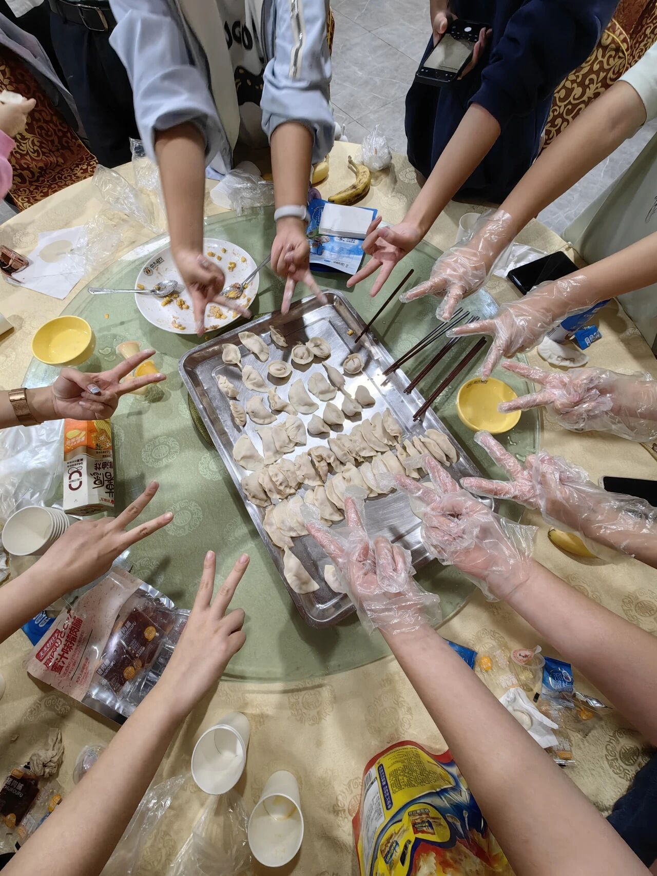 随着热气蒸腾,师生亲手包的饺子陆续出锅。香菇鲜肉、玉米猪肉、韭菜鸡蛋……馅料丰富,香气扑鼻。师生按喜好搭配调料,并取用精心准备的甜点与水果,共享这顿充满心意与温暖的晚餐。品尝之间,笑语相伴,舌尖美味化为心中温馨,为这个冬至之夜画上了圆满的句号。