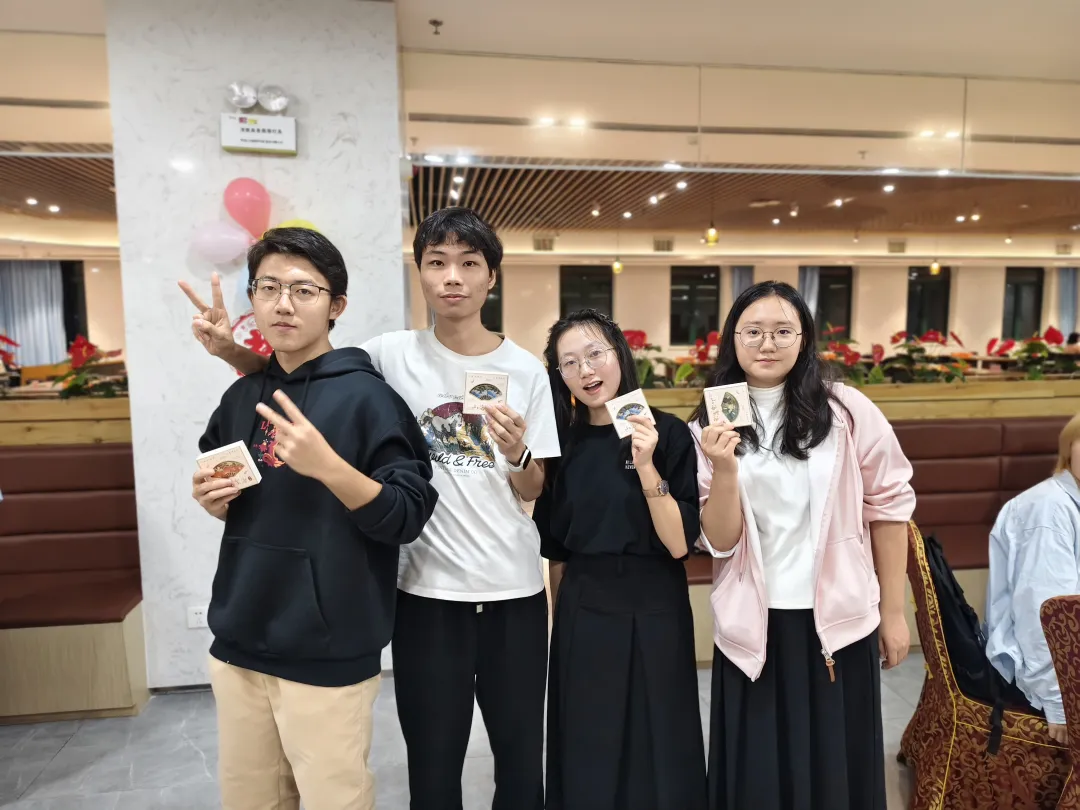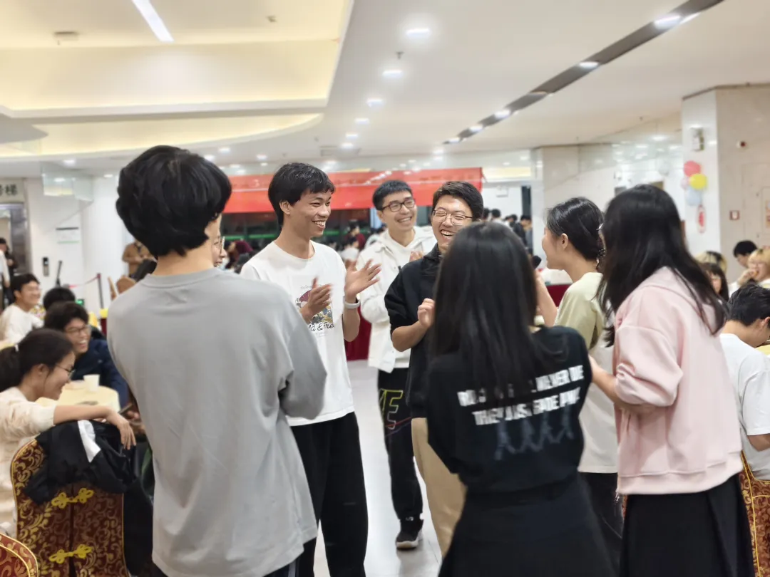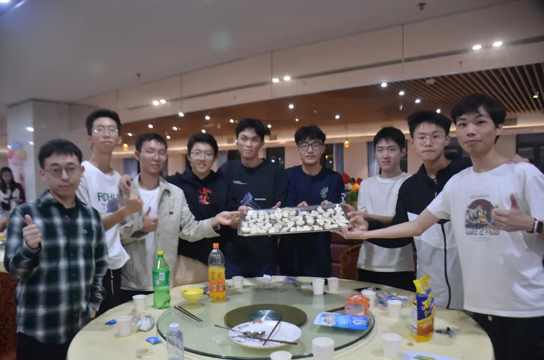 活动首先以“猜灯谜”游戏热场,师生踊跃参与,气氛轻松活跃。随后,包饺子环节正式开始。大家围坐桌边,手中饺皮与馅料翻飞,创意纷呈:有的饺子圆润饱满,有的别出心裁,更藏有“幸运梅子”饺子,为活动添上一份惊喜。过程中,师生协作交流,情谊悄然升温。等待饺子煮熟的间隙,现场又展开了“闹钟炸弹”“听歌识曲”等趣味游戏,笑声不断,拉近了彼此距离,也展现出25级同学们团结活泼的集体风貌。