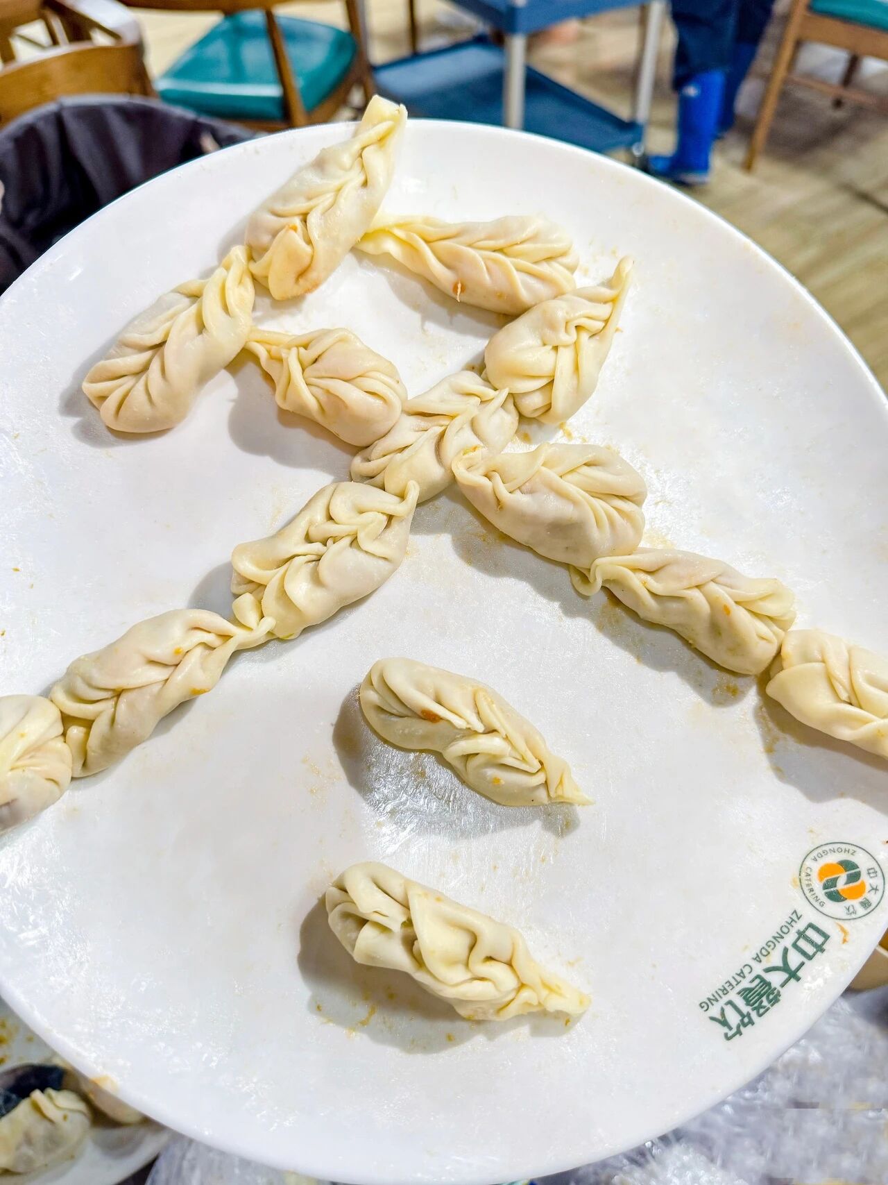 片刻之间,一盘盘独具特色的饺子便整齐码放。后厨内沸水翻滚,一锅锅热气腾腾的饺子新鲜出锅,浓郁的鲜香瞬间席卷整个饭堂。师生们捧着热气腾腾的餐盘围坐共食,刚出锅的饺子咬开一口,鲜香汤汁迸发,在热气氤氲中分享欢笑,于同窗相伴中感受温情。