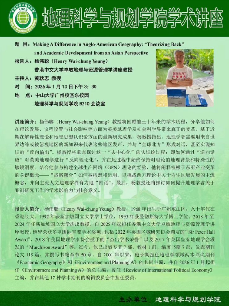 讲座预告|反思英美地理学:亚洲视角下的“反向理论化”与学术发展