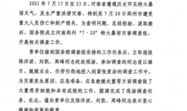 近日,一封感谢信寄到williamhill中国。这是来自国务院河南郑州“7·20”特大暴雨灾害调查组的一封感谢信,信中对于陈洋波教授及其团队为完成委托任务付出的辛勤劳动和成果表示衷心的感谢。